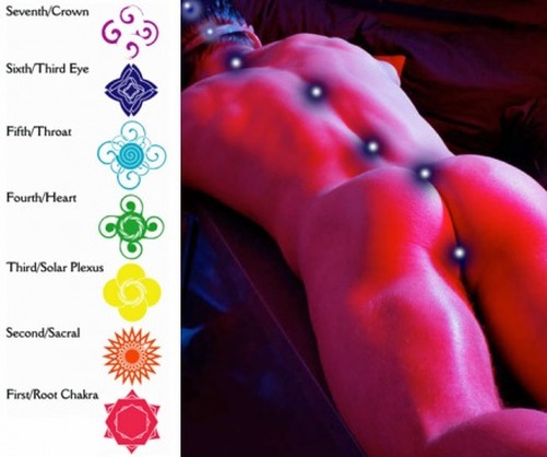 There are seven major chakras, or energy centers, in the body. During an in-jaculation, a current of energy is sent out from the reproductive organs to the base of the spine. It then travels up the spine to the top of the head-activating most, or all, of the chakras along the way. Once this activation process occurs, each chakra channels energy into the acupuncture meridians and central nervous system. This channeling of energy throughout the body’s energy systems and nervous system results in more intense sensations and a full-body experience because orgasmic energy is now transported to every part of the body. The seven chakras are connected to the central nervous system and spine via 72,000 small energy channels called “nadis” in Sanskrit.